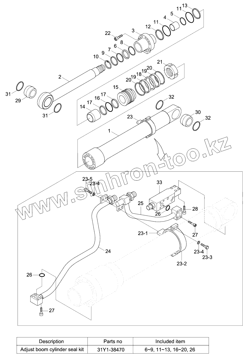 Каталог запасных частей к технике: Hyundai R170W-9S. BOOM CYLINDER (ADJUST BOOM)