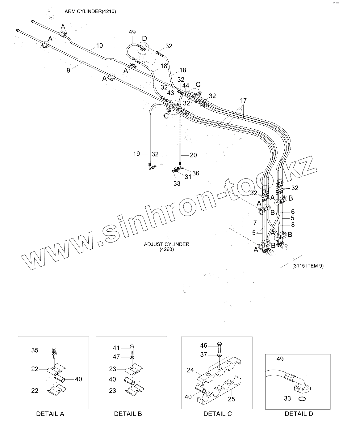 Каталог запасных частей к технике: Hyundai R170W-9S. BOOM HYD PIPING (ADJUST BOOM)