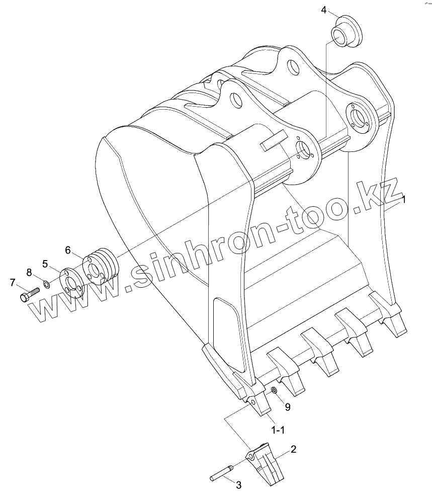 Каталог запасных частей к технике: Hyundai R170W-9S. BUCKET (0.69M3 SAE HEAPED, HEAVY DUTY)