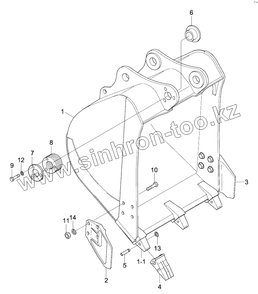 Каталог запасных частей к технике: Hyundai R170W-9S. BUCKET (3 TEETH)