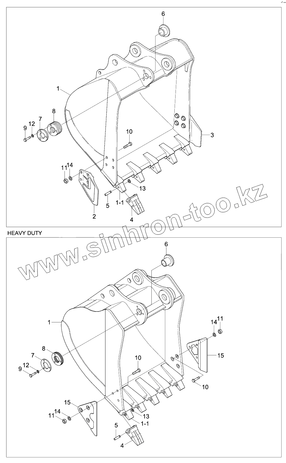 Каталог запасных частей к технике: Hyundai R170W-9S. BUCKET (5 TEETH)