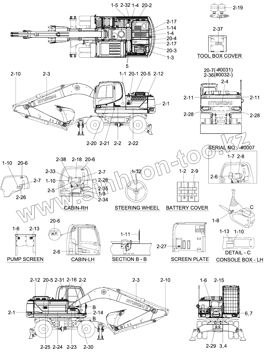 Каталог запасных частей к технике: Hyundai R170W-9S. DECALS