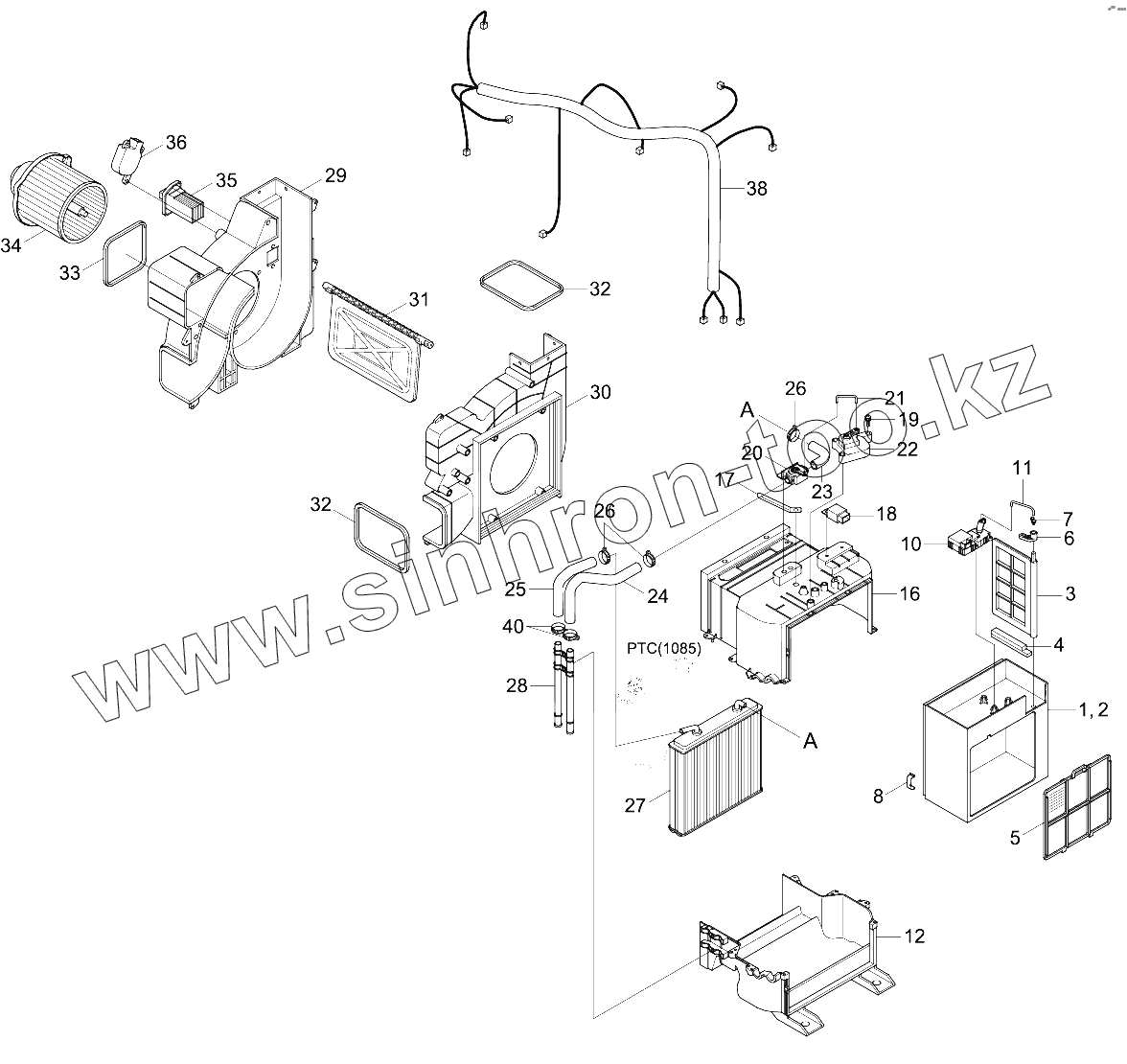 Каталог запасных частей к технике: Hyundai R170W-9S. HEATER UNIT (SEMI AUTO)