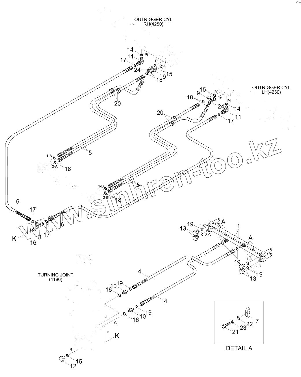 Каталог запасных частей к технике: Hyundai R170W-9S. LOWER HYD PIPING (2-OUTRIGGER, -#0066)