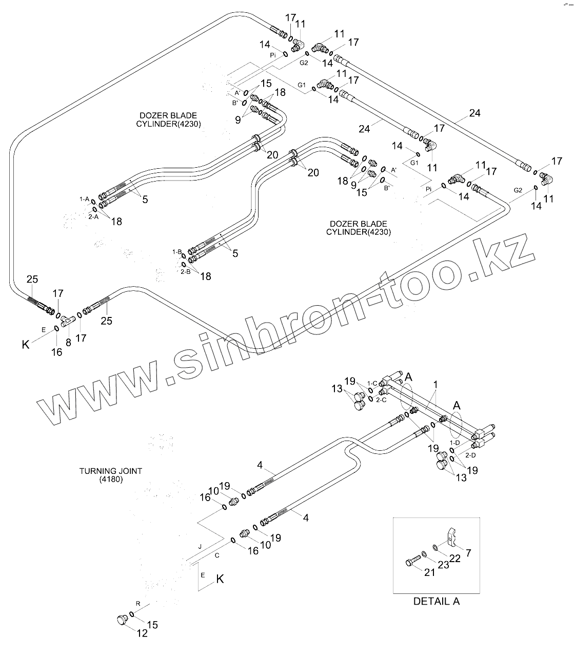 Каталог запасных частей к технике: Hyundai R170W-9S. LOWER HYD PIPING (REAR BLADE, -#0066)