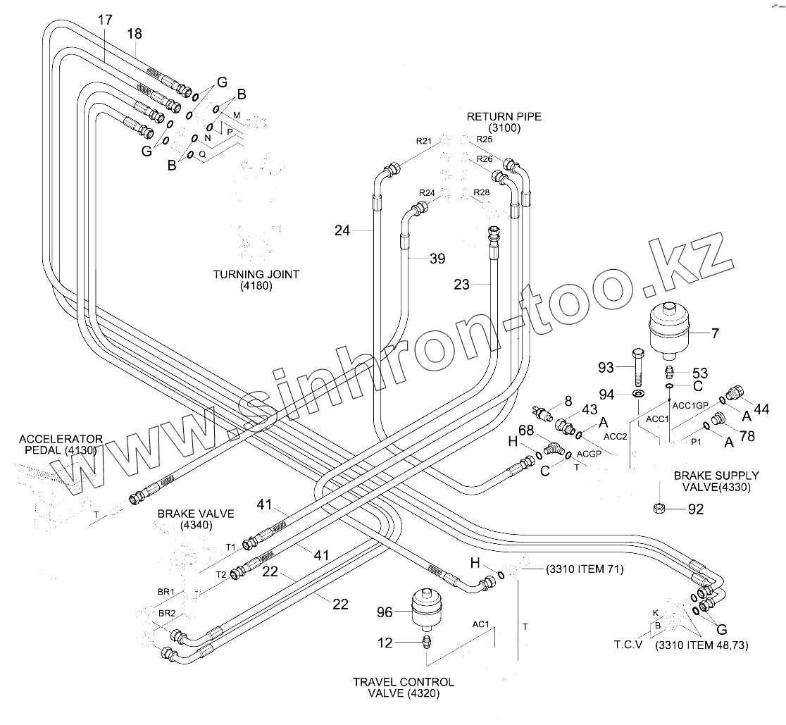 Каталог запасных частей к технике: Hyundai R170W-9S. POWER TRAIN HYD PIPING 3