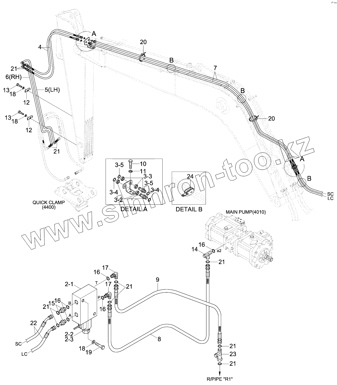 Каталог запасных частей к технике: Hyundai R170W-9S. QUICK CLAMP HYD PIPING