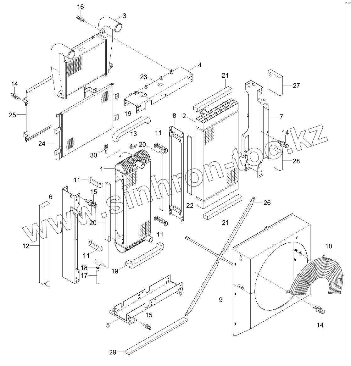 Каталог запасных частей к технике: Hyundai R170W-9S. RADIATOR ASSY