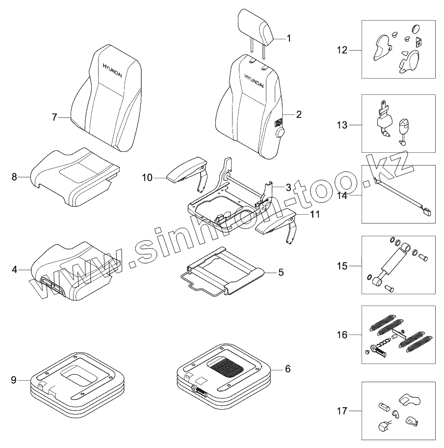 Каталог запасных частей к технике: Hyundai R170W-9S. SEAT (SUSPENSION, HEATED)