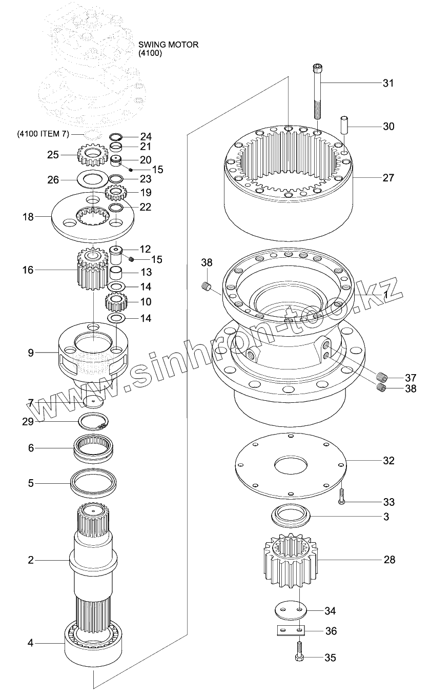 Каталог запасных частей к технике: Hyundai R170W-9S. SWING REDUCTION GEAR