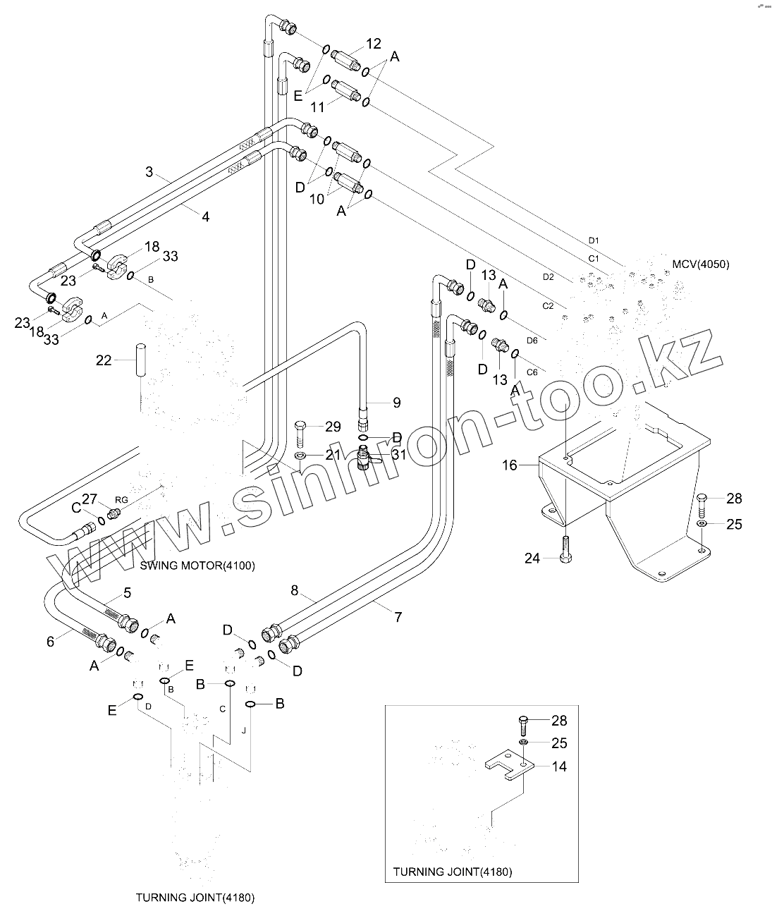 Каталог запасных частей к технике: Hyundai R170W-9S. UPPER HYD PIPING (TRAVEL)