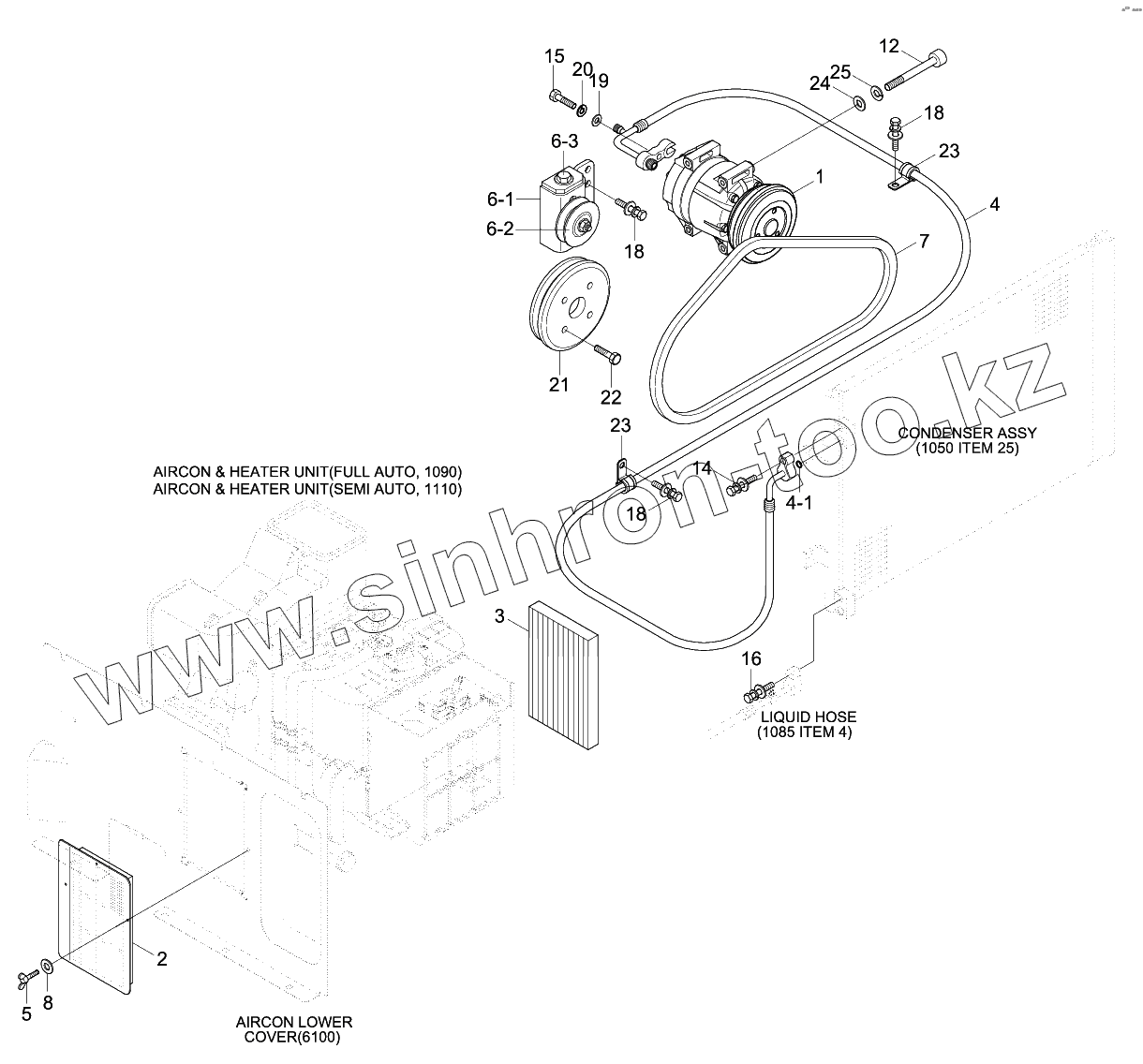 Каталог запасных частей к технике: Hyundai R180LC-9. AIR CONDITIONER MOUNTING