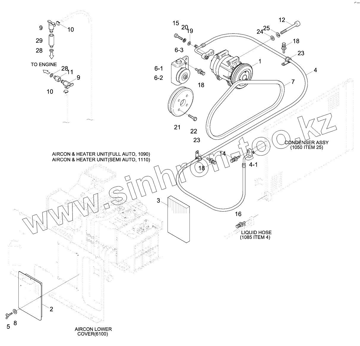 Каталог запасных частей к технике: Hyundai R180LC-9. AIRCON & HEATER GROUP