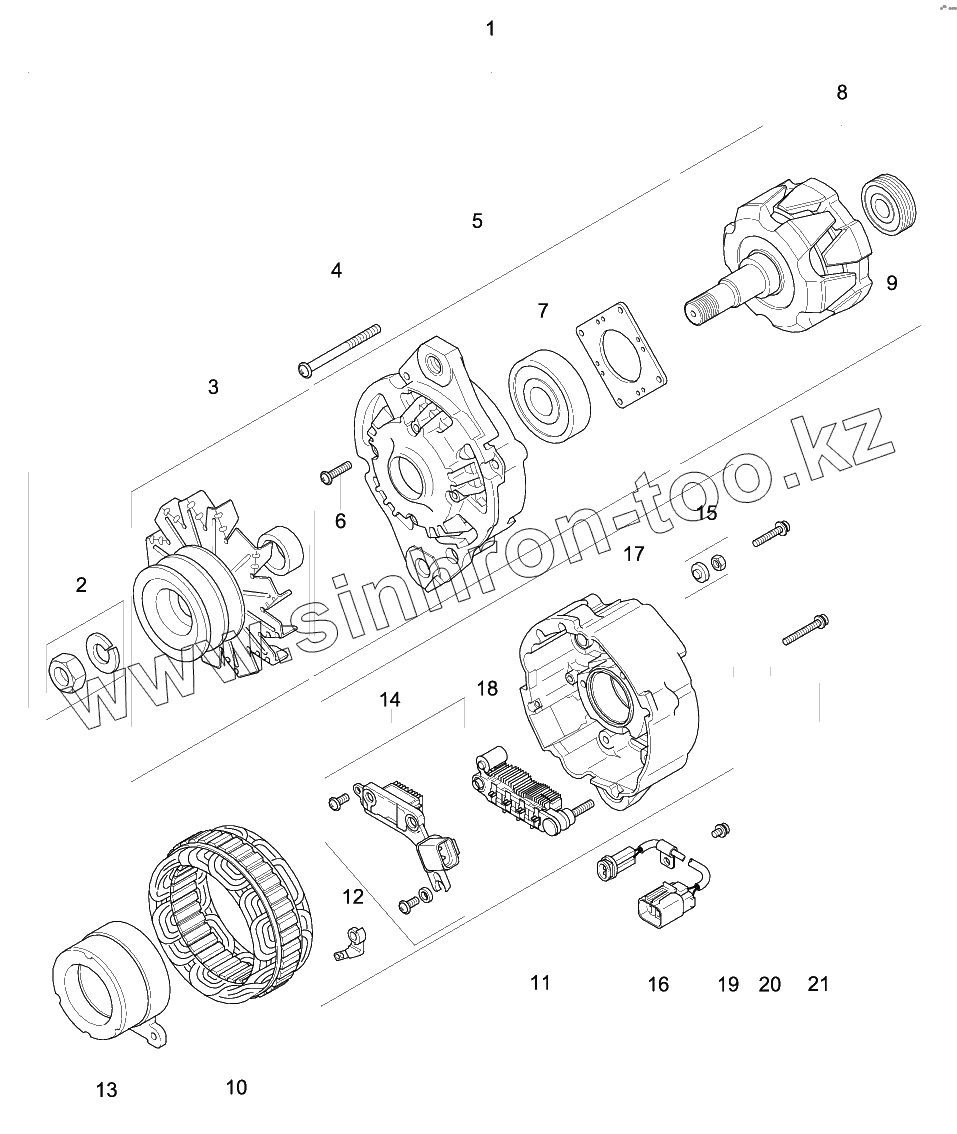 Каталог запасных частей к технике: Hyundai R180LC-9. ALTERNATOR (24V-50A)