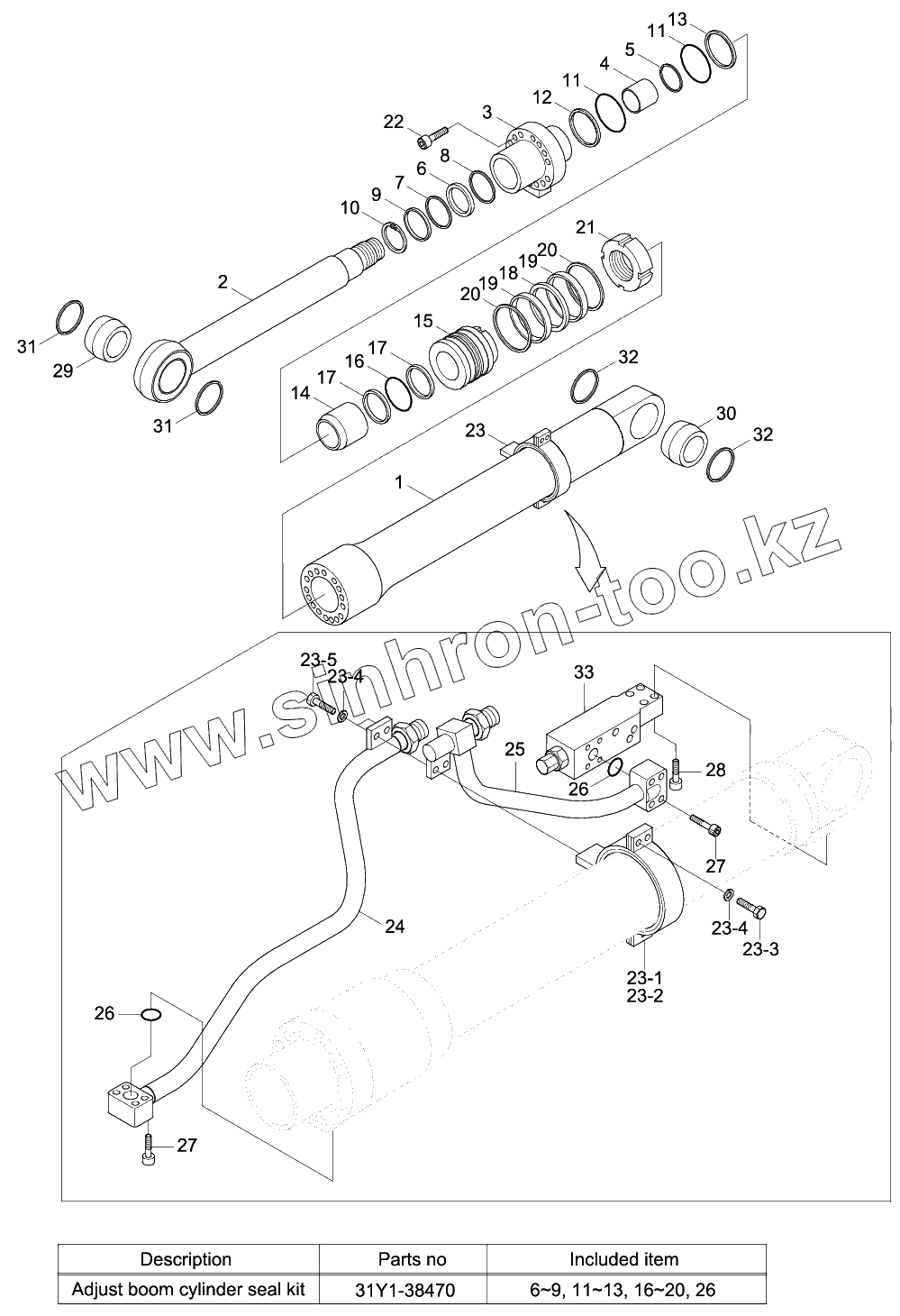 Каталог запасных частей к технике: Hyundai R180LC-9. BOOM CYLINDER (ADJUST BOOM)