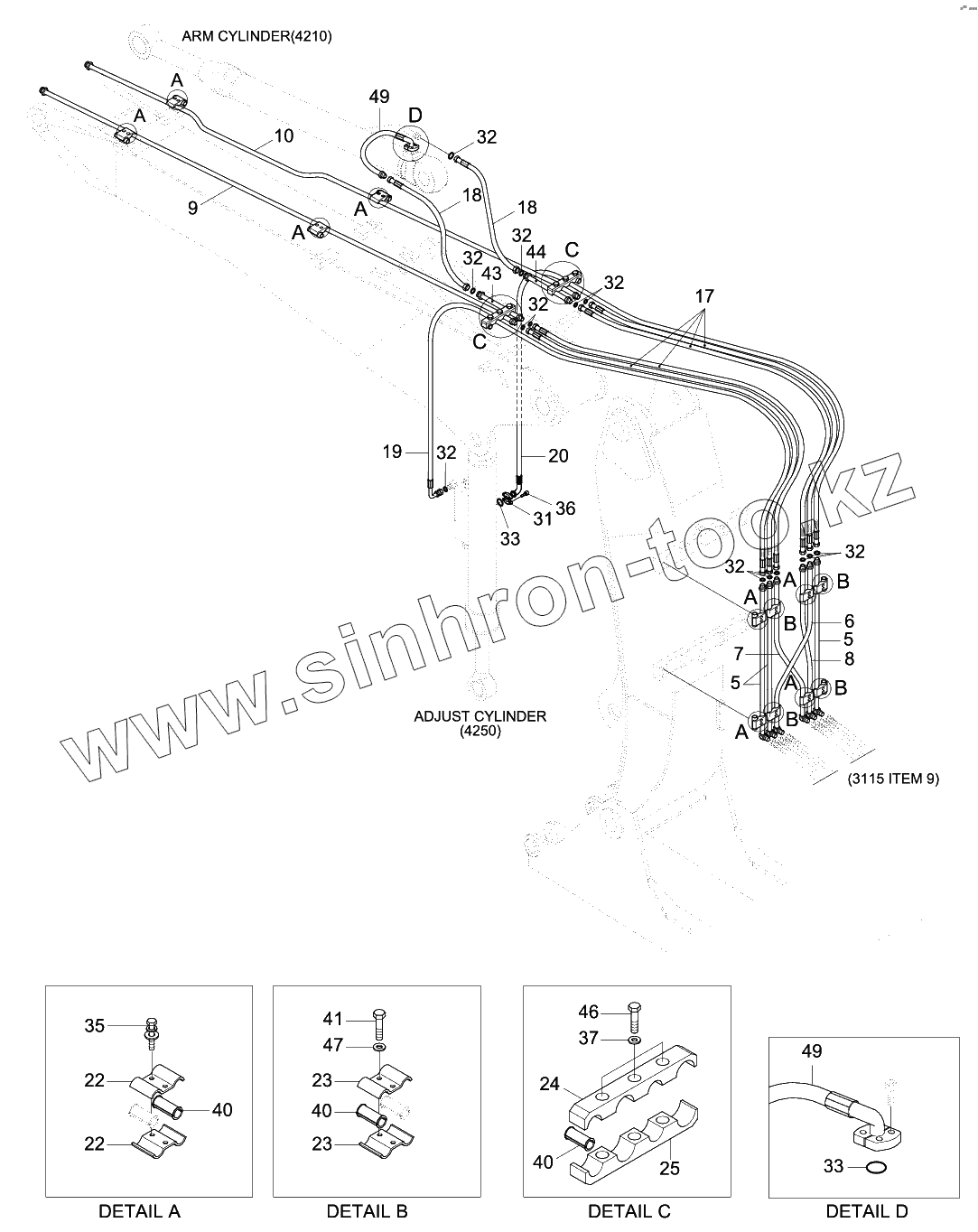 Каталог запасных частей к технике: Hyundai R180LC-9. BOOM HYD PIPING (ADJUST BOOM)