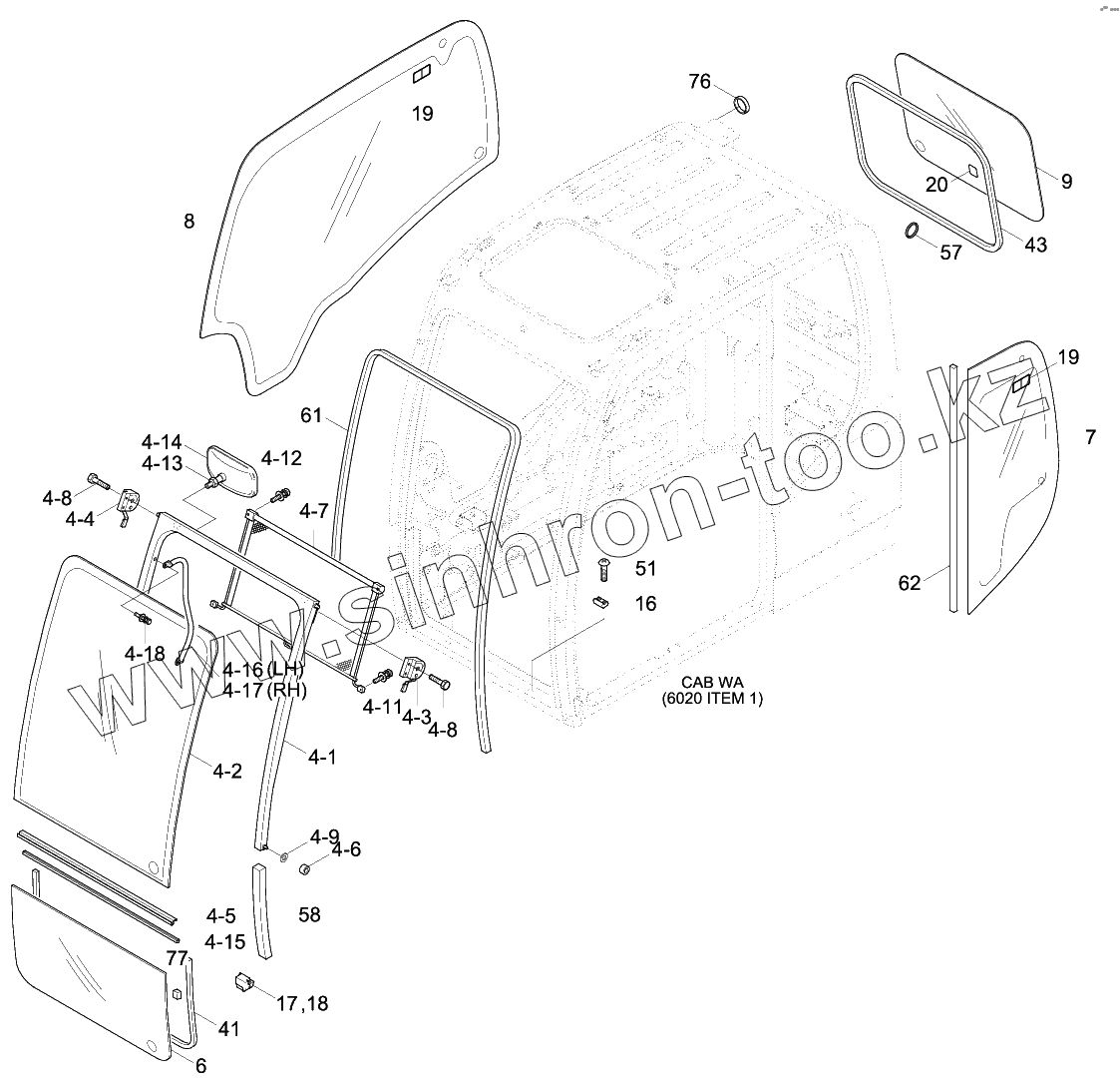 Каталог запасных частей к технике: Hyundai R180LC-9. CAB ASSY (3/4)