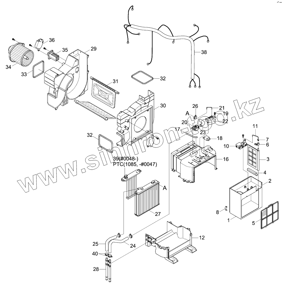 Каталог запасных частей к технике: Hyundai R180LC-9. HEATER UNIT (SEMI AUTO)