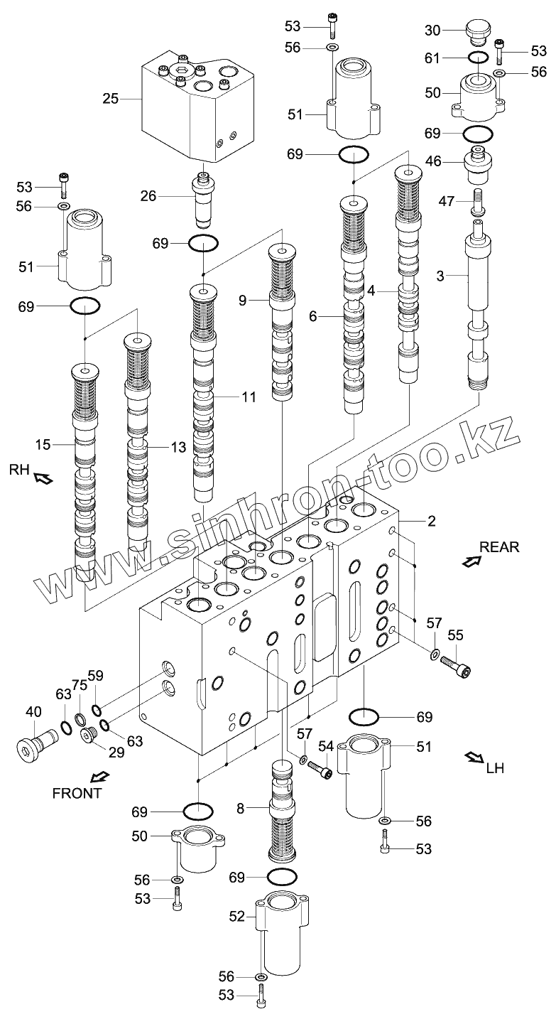 Каталог запасных частей к технике: Hyundai R180LC-9. MAIN CONTROL VALVE (3/4)