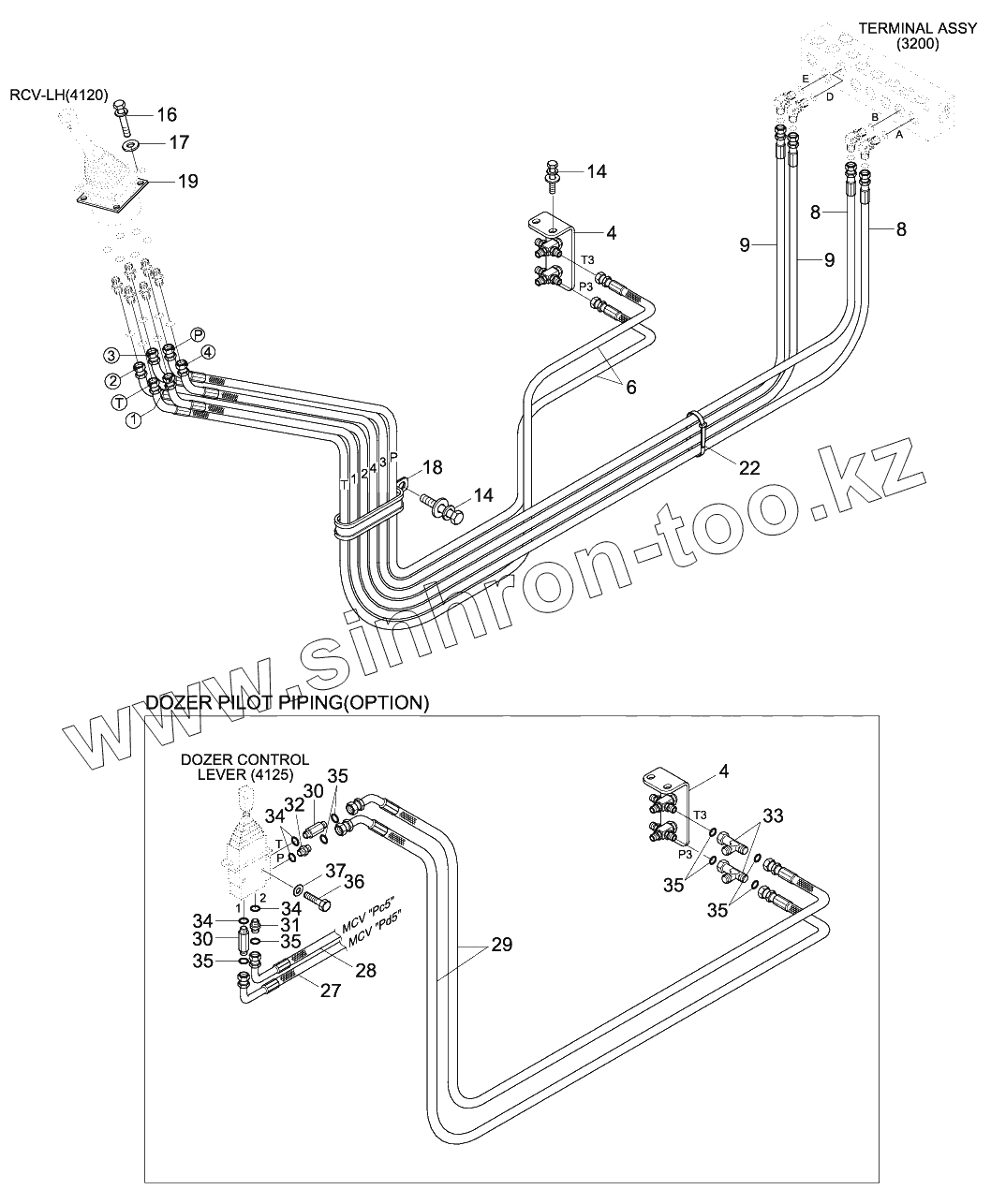 Каталог запасных частей к технике: Hyundai R180LC-9. PILOT HYD PIPING (BOTTOM 1)