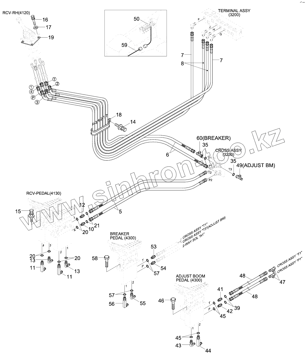 Каталог запасных частей к технике: Hyundai R180LC-9. PILOT HYD PIPING (BOTTOM 2)