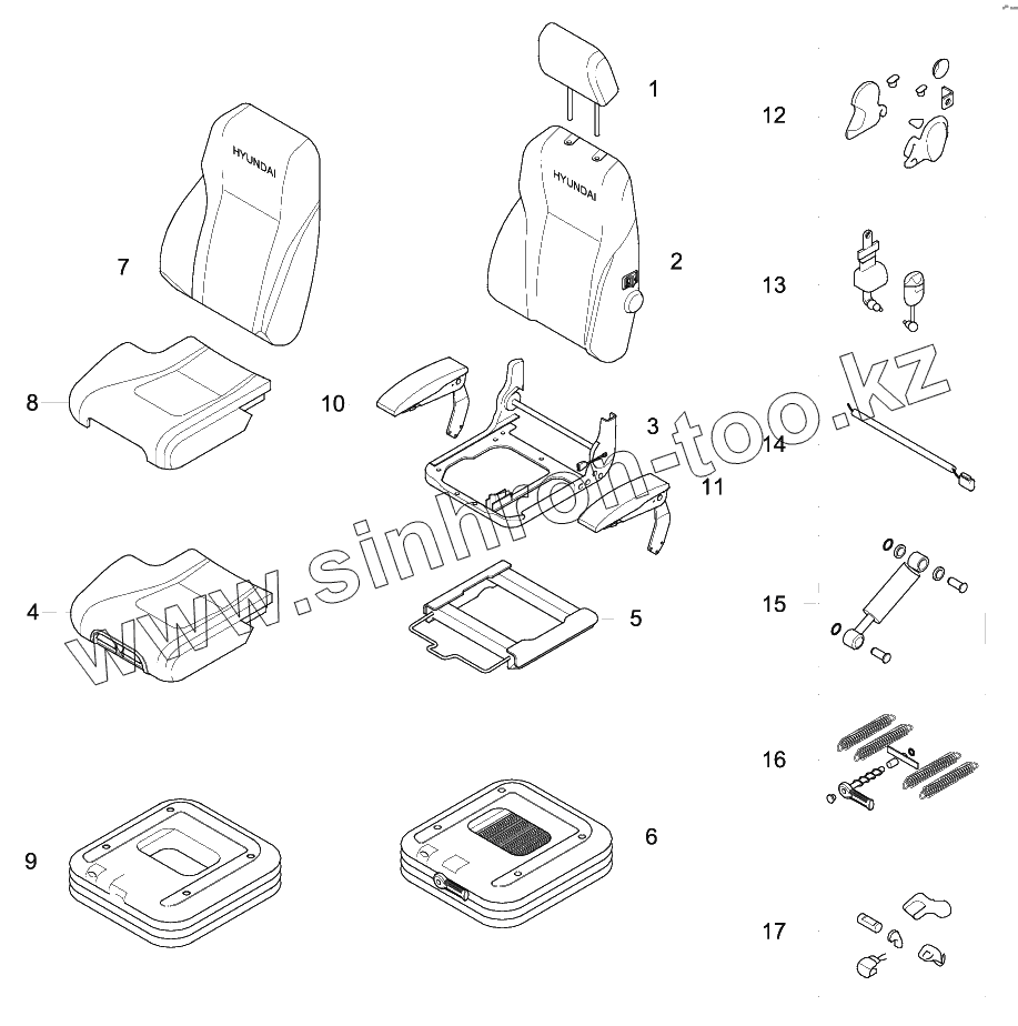 Каталог запасных частей к технике: Hyundai R180LC-9. SEAT (SUSPENSION, HEATED, STD)