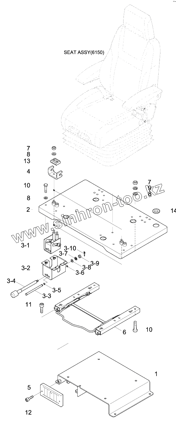 Каталог запасных частей к технике: Hyundai R180LC-9. SEAT BASE ASSY