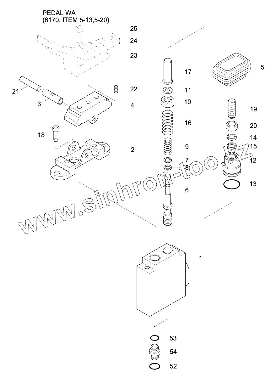 Каталог запасных частей к технике: Hyundai R180LC-9. SINGLE PEDAL (DOUBLE ACTING)