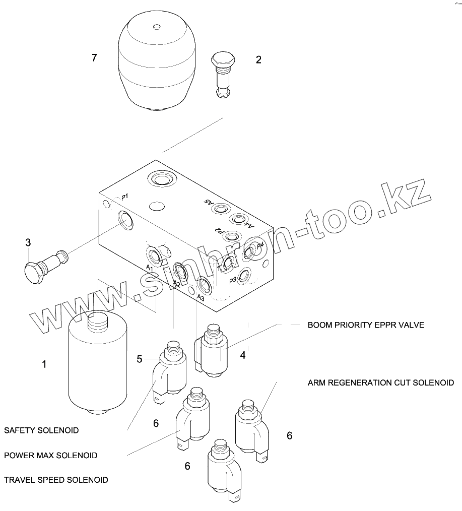 Каталог запасных частей к технике: Hyundai R180LC-9. SOLENOID VALVE (-#0039)