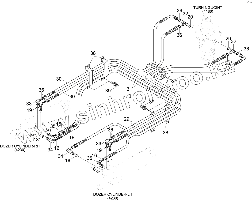 Каталог запасных частей к технике: Hyundai R180LC-9. TRAVEL HYD PIPING 2 (R180LCD-9)
