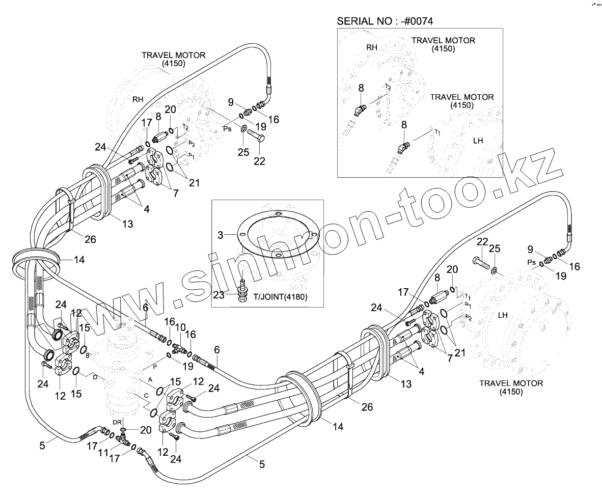 Каталог запасных частей к технике: Hyundai R180LC-9. TRAVEL HYD PIPING (R180LC-9)