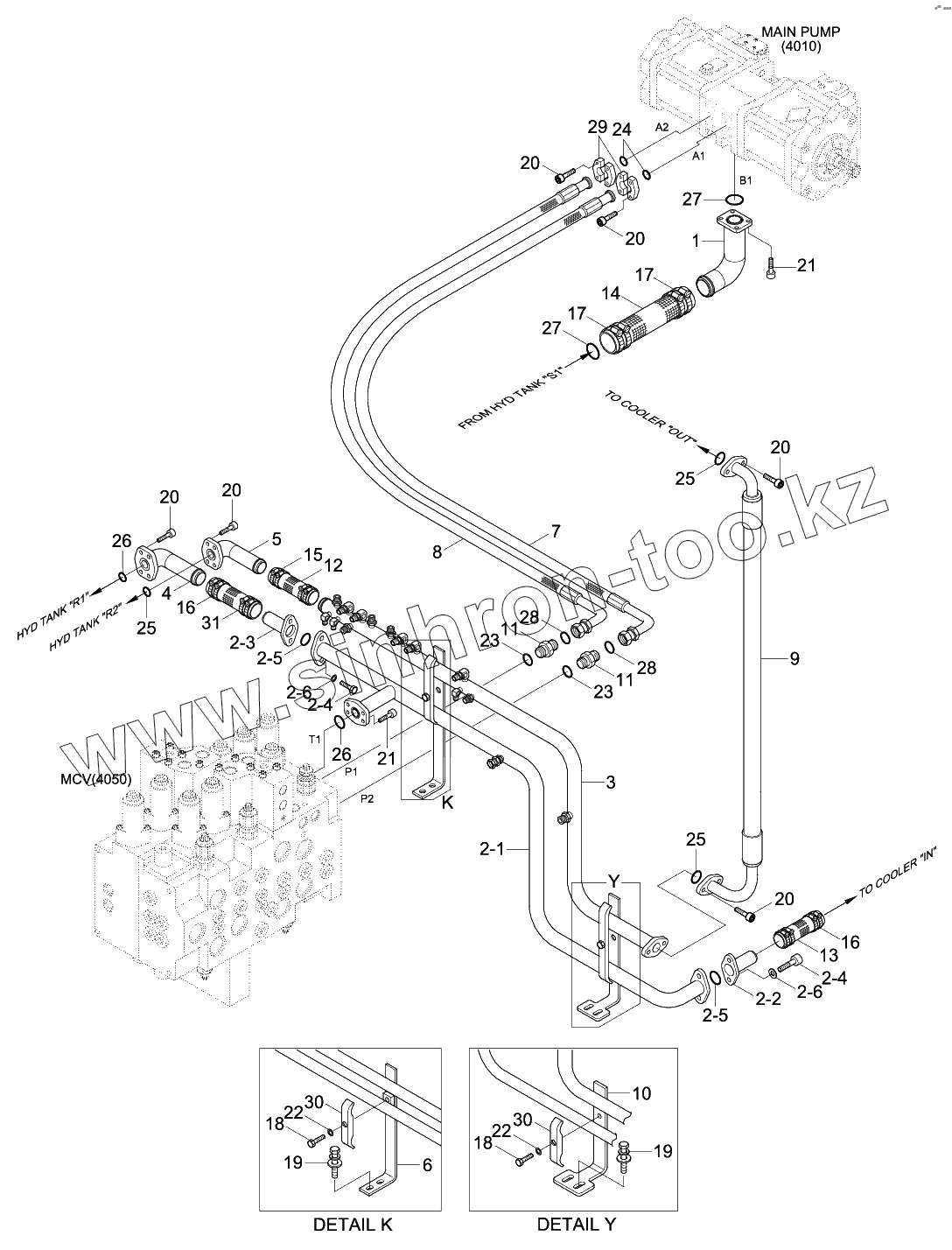 Каталог запасных частей к технике: Hyundai R180LC-9. UPPER HYD PIPING (BASE)