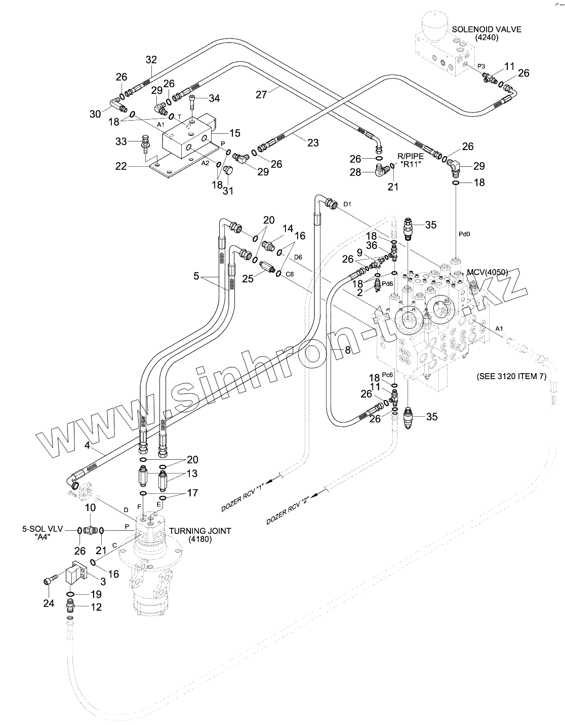 Каталог запасных частей к технике: Hyundai R180LC-9. UPPER HYD PIPING (R180LCD-9)