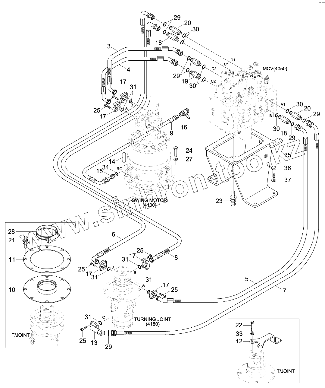 Каталог запасных частей к технике: Hyundai R180LC-9. UPPER HYD PIPING (TRAVEL)