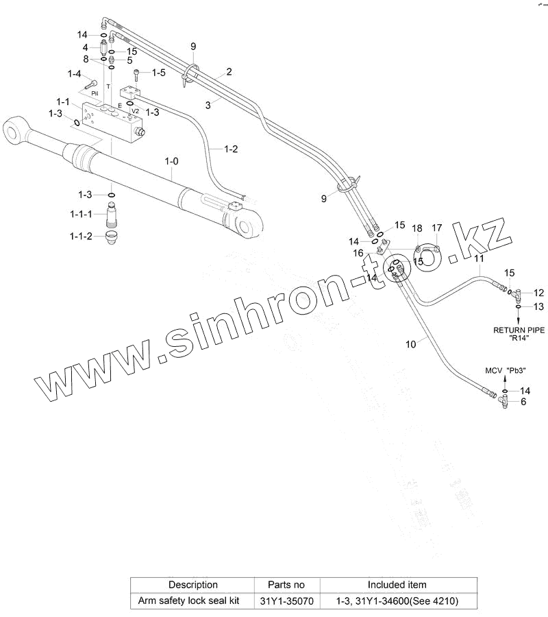 Каталог запасных частей к технике: Hyundai R180LC-9S. ARM SAFETY LOCK SYSTEM
