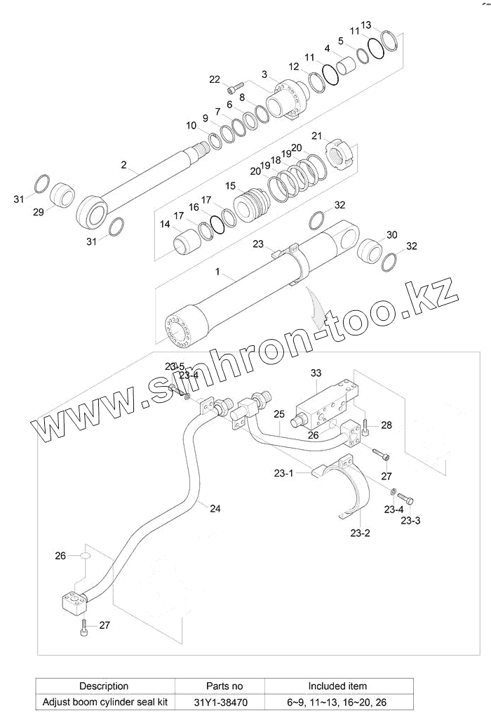 Каталог запасных частей к технике: Hyundai R180LC-9S. BOOM CYLINDER (ADJUST BOOM)