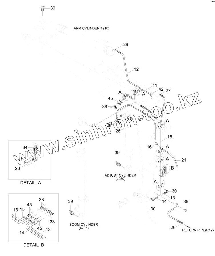 Каталог запасных частей к технике: Hyundai R180LC-9S. BOOM GREASE LUB SYSTEM (ADJUST BOOM)