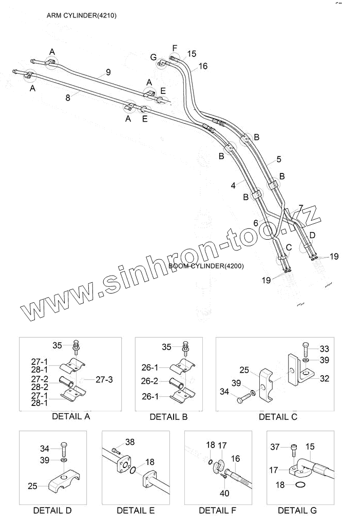 Каталог запасных частей к технике: Hyundai R180LC-9S. BOOM HYD PIPING (5.1M, STD)