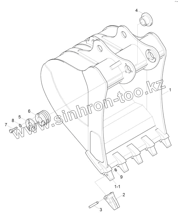 Каталог запасных частей к технике: Hyundai R180LC-9S. BUCKET (0.69M3 SAE HEAPED, HEAVY DUTY)