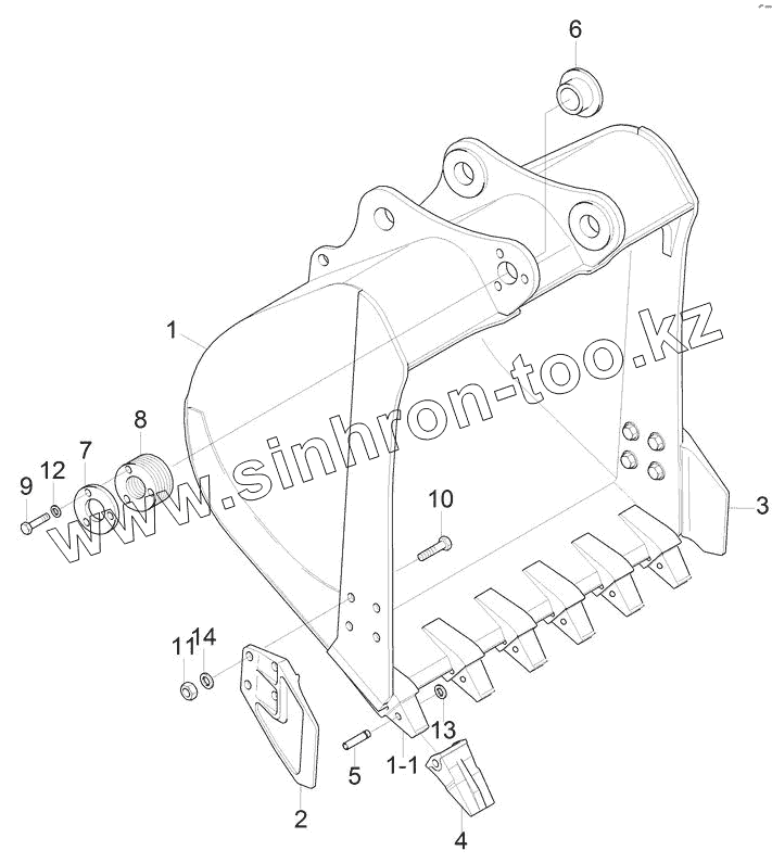 Каталог запасных частей к технике: Hyundai R180LC-9S. BUCKET (6 TEETH)