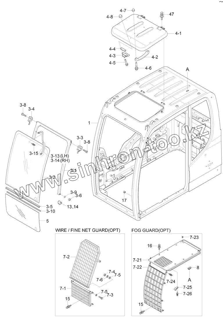Каталог запасных частей к технике: Hyundai R180LC-9S. CAB ASSY (1/4)