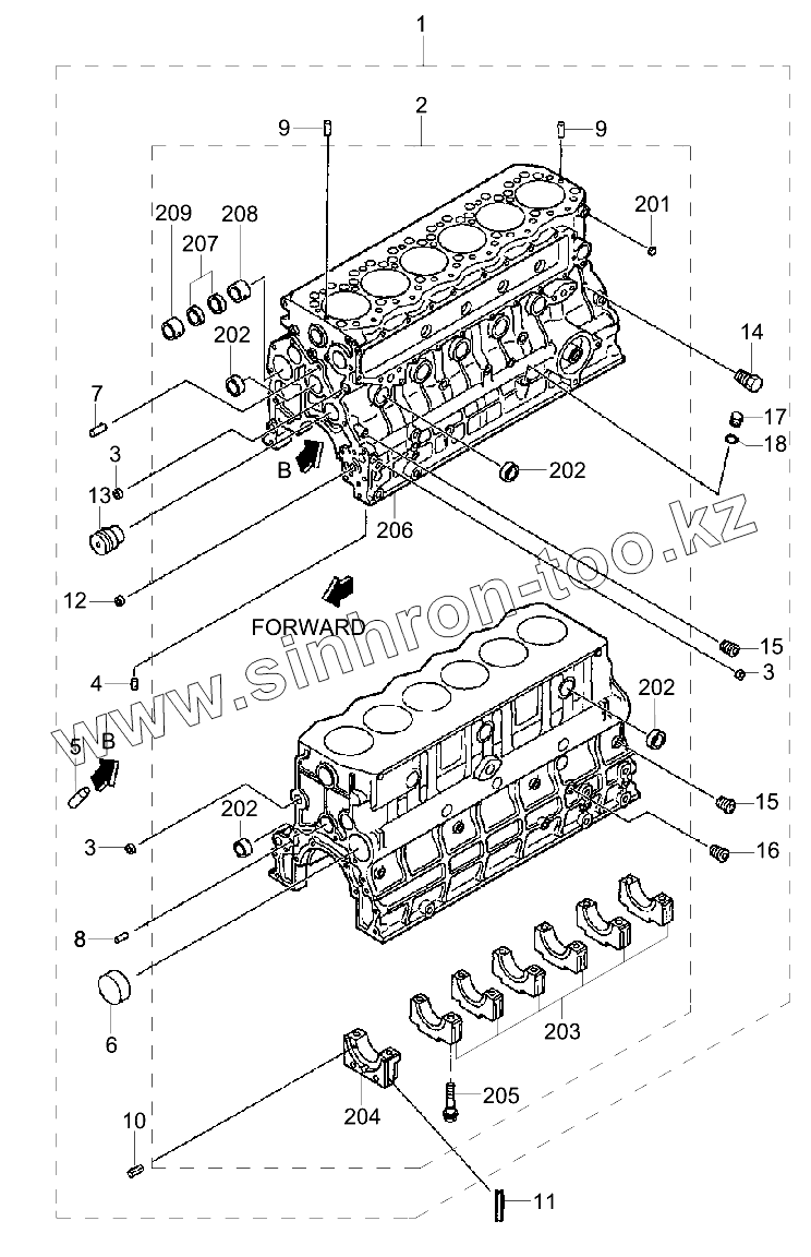 Каталог запасных частей к технике: Hyundai R180LC-9S. CRANKCASE ASSY