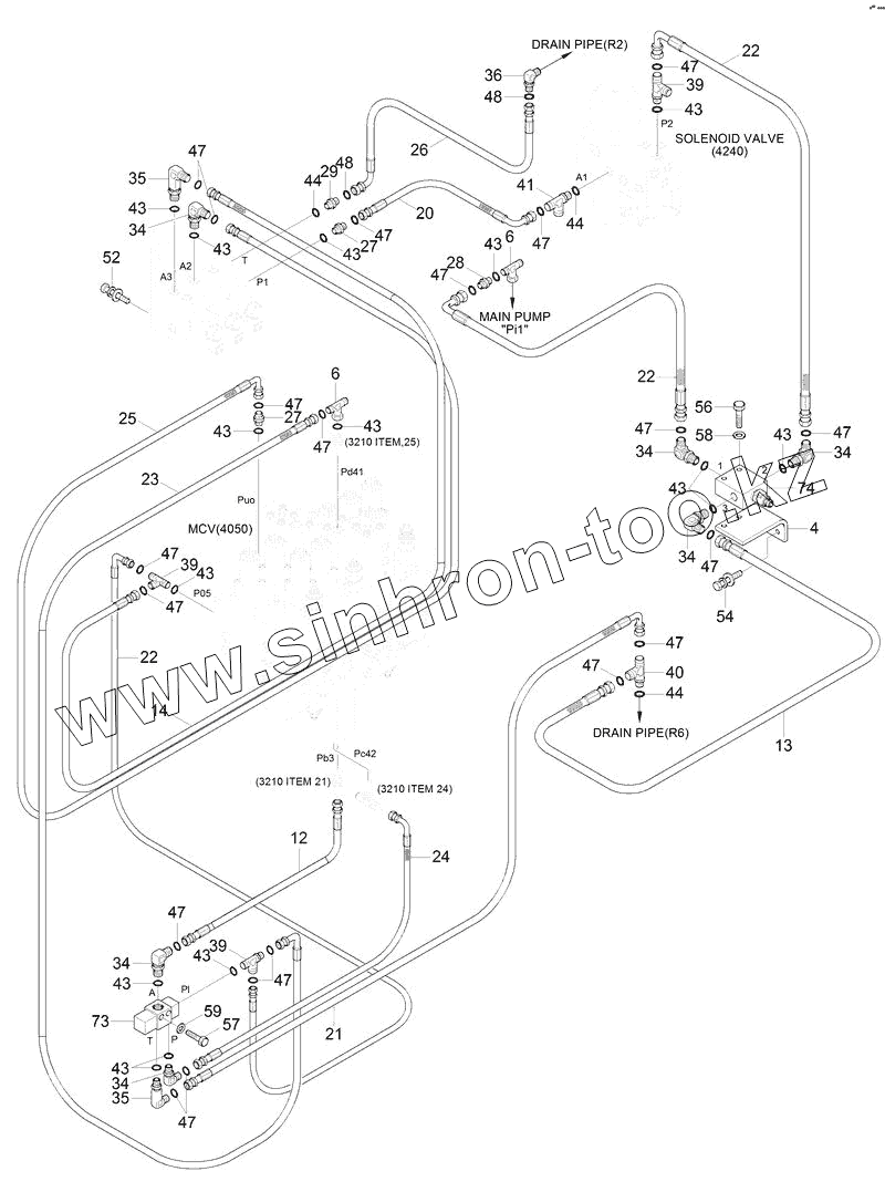 Каталог запасных частей к технике: Hyundai R180LC-9S. DOUBLE ACTING MAIN PIPING KIT 2