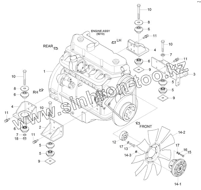 Каталог запасных частей к технике: Hyundai R180LC-9S. ENGINE MOUNTING