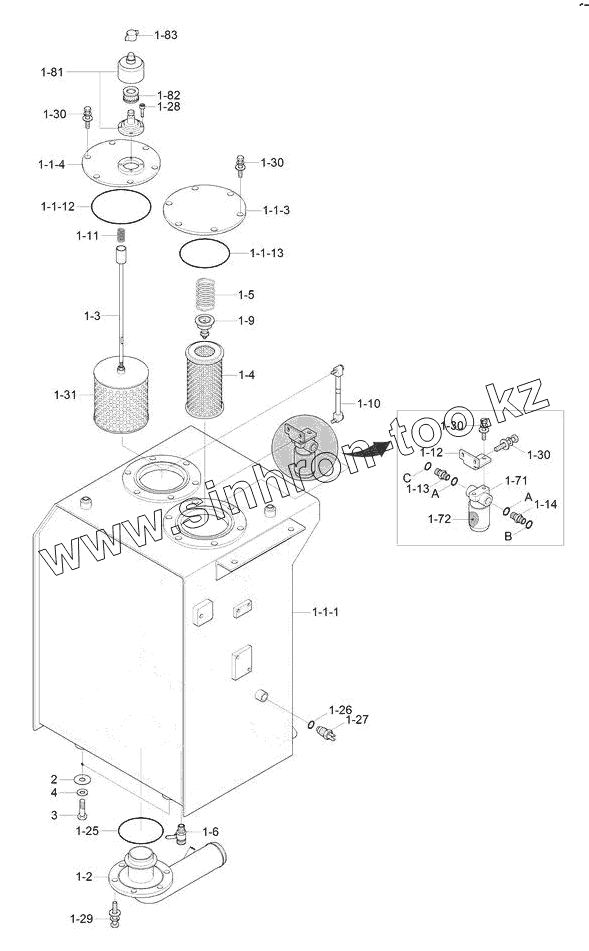 Каталог запасных частей к технике: Hyundai R180LC-9S. HYDRAULIC TANK