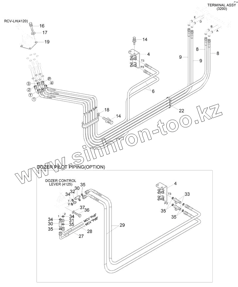 Каталог запасных частей к технике: Hyundai R180LC-9S. PILOT HYD PIPING (BOTTOM 1)