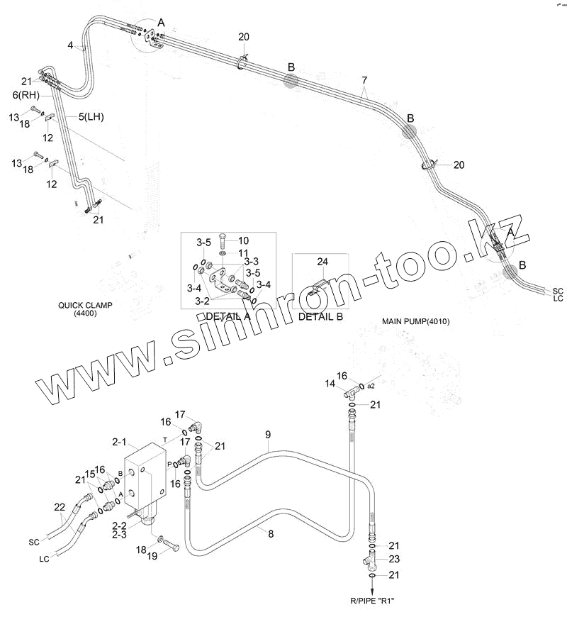 Каталог запасных частей к технике: Hyundai R180LC-9S. QUICK CLAMP HYD PIPING