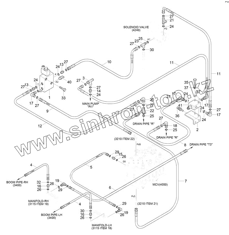 Каталог запасных частей к технике: Hyundai R180LC-9S. S/ACTING MAIN PIPING KIT (ADJUST BOOM)