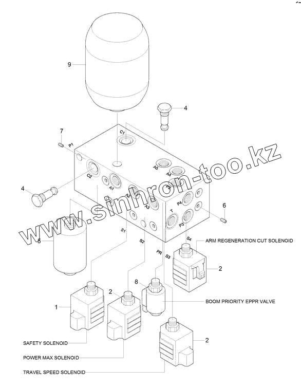 Каталог запасных частей к технике: Hyundai R180LC-9S. SOLENOID VALVE