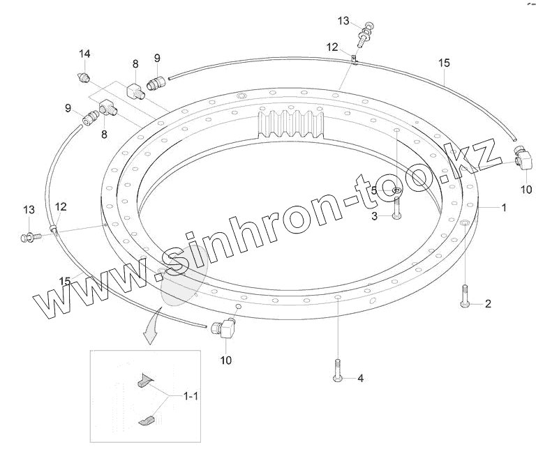 Каталог запасных частей к технике: Hyundai R180LC-9S. SWING RING GREASE LUB SYSTEM